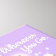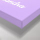 An angel-like fairy flies across this adorable personalised lavender canvas for girls. Original art by the artist, Leandra. The words say "Sprinkle Fairy Dust Wherever You Go" Her wings are pale yellow and her white flowing dress is accented with lavender. She wears a pink sash and slippers and here long, brown hair curls at the ends. She holds a ball of light and spills fairy dust into the air!