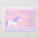 ~This birthday invitations design features a magical purple and white Unicorn. There is a pink and purple fantasy background and castle. Personalise with your birthday girl's name and party details.
