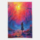 Discover this vibrant and breathtaking fantasy art print. This mystical scene features a lone figure on a peaceful path, surrounded by a forest of glowing trees and magical hues. Originally created with AI and then enhanced by a skilled artist, this design guarantees uniqueness and creativity. It's the perfect piece for art lovers and fantasy enthusiasts alike, bringing a sense of wonder and tranquillity to any style. Don't wait to add this enchanting artwork to your collection. Place your order today and embrace the joy of shopping for a truly magical masterpiece.