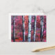 This fine art postcard invites you into a magical forest of white aspen trees with colours of red, purple, orange, pink and green. Surrealistic, impressionistic, abstract and definitely whimsical!