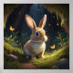 Magical Forest Scene with cute Rabbit Poster