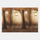 Wrapping paper sheets with a whimsical enchanting illustration in rich brown and yellow colours. A magical mystical forest with a large tree holding an old fashioned lantern. Fairy lights dancing all around. An enchanting wonderful design.