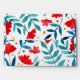 Magical garden - red and turquoise. Watercolor botanical illustration envelopes
