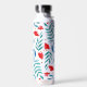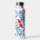 Watercolor botanical illustration pattern with red magical flowers and turquoise branches.