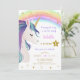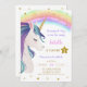 Magical glitter colourful unicorn rainbow birthday party invitation.