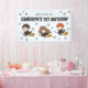 Welcome your guests to a magical celebration with this adorable, personalised Harry Potter-themed welcome banner! It features cute, chibi-style illustrations of Harry, Hermione, and Ron flying on their broomsticks. The banner can be customised with the birthday child's name, creating a warm and enchanting greeting for all your friends and family. Set against a clean white background with a sprinkle of pastel-coloured stars, this sign is the perfect first impression for a whimsical and memorable birthday party.