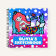 This cute magical mermaid name sketchbook for kids can be personalised using the online tools. Design features pink, purple, teal lines with a touch of white dots.