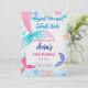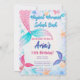 Make a splash with this magical mermaid birthday invitation! This design features beautiful watercolor mermaid tails in shades of pink, teal, and purple, accented with golden glitter. Seashells, starfish, and bubbles complete the underwater scene. Perfect for a girl's birthday party, this invitation is sure to capture the imagination of your guests. Personalise it with your party details to create a truly unique celebration.