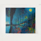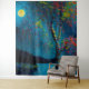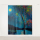 Magical Moon River Tree in the style of an oil painting. Moonlight glistening on the river, flowers on the bank, mountains in the background. Romantic and mysterious.