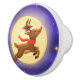 This Magical Moonlit Reindeer Ceramic Knob features a charming reindeer soaring across a glowing golden moon, wrapped in a festive red scarf and hat. The deep violet night sky, sparkling stars, and snowy treetops create a cosy, storybook holiday scene in miniature form.
