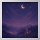 Immerse yourself in a magical moonlit village nightscape that blends fantasy, emotion, and elegance. This square-format design captures a peaceful mountain village nestled beneath a dreamy starry sky, with swirling clouds and radiant celestial elements. The glowing windows and golden moonlight evoke warmth and serenity, while the rich palette of purples and blues adds depth and wonder. Perfect for lovers of whimsical night illustration and celestial landscape design, this artwork touches the heart and inspires the imagination.