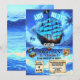 Magical Neon Blue Glow Pirate Ship Ahoy Birthday Invitation