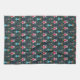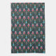 Cute and fun Christmas kitchen towel featuring hand drawn illustration of cat, dog, and mouse as nutcracker ballet characters. The background is green.