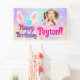 Shout it from the rooftops, say it big and bold - it's time to get the word out! Indoors or out, bring the magic of rainbows and unicorns to life with our Magical Party Birthday Banner! PingKarma Custom Personalised Photo Party Banners fantastically complement the entire Magical Party Collection. These adorable photo banners are designed to perfectly coordinate with the magical, unicorn, rainbow theme of this sparkling collection. From the personalised invites to the matching party plates and gift bags everything beautifully comes together to create an enchantingly magical party playland no one will ever forget. These banners feature an adorable photo of the birthday child and all the sprinkles and sparkles featured throughout the magical party collection.