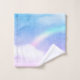 Towel set with a soft and lovely background image. Pastel blues and pink clouds with a magical rainbow.