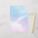 Stationery paper with a soft and lovely background image. Pastel blues and pink clouds with a magical rainbow.