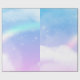 Wrapping paper with a soft and lovely background image. Pastel blues and pink clouds with a magical rainbow.