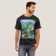 I give wanted to give this a 4 instead of a 5 because these Basic DARK T0shirts run unexpectedly SLIM or Narrow. Which is great if you do not have a potbelly, but I have a paunch. It isn't the shirt's fault that I've got a beer belly. The design and shirt itself is a quality cotton shirt. The color is more of a deep purple, but still a very pretty color. The Basic DARK T-shirts run a bit SLIMMER than the Basic Ts. The neck is a fraction narrower (or seems to be narrower) also. I'm a paunchy middle-aged woman and my neck is 12 inches (31cm) thick and the neckline fell about the same as in the photo of the man, and I had the desire to tug it a bit. So if you're a thick necked man or like loose shirts, be aware these are slimmer shirts. Once I get rid of my lockdown paunch it'll look great. The shirt washed well in cold water with no apparent bleeding. We don't have a dryer, so it hung dry. Did not shrink. Love the colors and the design. The design looks smaller on my shirt than it does on the model on-line. But still, it looks good on the shirt. The printing looks as it does on the model, just the size seems fractionally smaller. Washed garment in cold water, hung dry and design appeared unaffected.