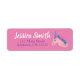 Design features an original marker illustration of a magical pink, blue and purple unicorn. Just personalise with your address information.
