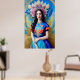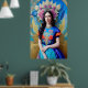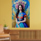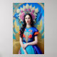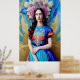 An image of a magical princess with gorgeous dress and blue wings. This is an AI generated artwork with a floral theme.