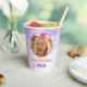 Magical Purple Photo Birthday Party Paper Cups. Celebrate her special birthday with this enchanting design! Featuring a customizable photo frame set against a whimsical background of soft purple bubbles, sparkling stars, and glitter accents. Personalize with name and age for a truly unique touch.