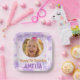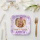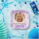 Magical Purple Photo Birthday Party Paper Plates. Celebrate her special birthday with this enchanting design! Featuring a customizable photo frame set against a whimsical background of soft purple bubbles, sparkling stars, and glitter accents. Personalize with name and age for a truly unique touch. Perfect for creating unforgettable party supplies, invitations, and favors that will make her feel like a princess.