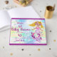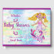 Magical rainbow bubbles with 3 little Baby girl mermaids to choose from for a baby Shower party ( Thanks says the stork at the back )