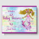 Magical rainbow bubbles with 3 little Baby girl mermaids to choose from for a baby Shower party ( Thanks says the stork at the back )