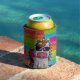 The magical unicorn is fun and whimsical. Sparkly faux glitter background is available in many colours. Celebrate any occasion with this delightful can cooler. On one side, the unicorn is poking up from the bottom and on the other side, they are dropping down from above. Playful way to take drinks. Funky rainbow brick pattern adds to the charm.