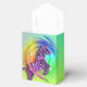 A fun magical birthday party favour boxes with a purple faux sparkle effect Unicorn jumping through a colourful rainbow, so cute and a favourite with young girls; just customise it with your birthday girl's personal birthday party details or text of your choices on the back.
