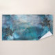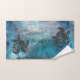 On this dreamy blue towel set are paint strokes shades of blue and with shimmery and glittery overlays creating whimsical magical modern art along with a black tribal swirl sea turtle with gold glittery drops on the top and bottom of the towels for added whimzy.