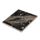 Beautiful ceramic tile design featuring stylised gold metallic stars, strings and bokeh on black background.