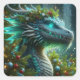 Magical Turquoise Christmas Dragon Square Sticker