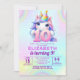 Cute unicorn invitation for a girl turning 10!. Includes rainbow accents and customizable details for a dreamy celebration.