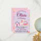 Make your little princess’s day magical with this adorable unicorn-themed 1st birthday invitation! Featuring a cute pink unicorn, royal castle, and fairytale carriage, this design is perfect for celebrating your baby girl’s special milestone. Personalise with your child’s name, party details, and RSVP information. Ideal for a whimsical or fairytale birthday party theme.