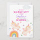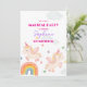 Let your child’s birthday sparkle with flying unicorns and rainbows. This adorable invitation sets the tone for a truly magical party.
