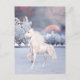 Unicorn in a magical seeming winter setting sunrise or maybe sunset, a fantasy way to start or end the day