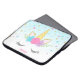 Sweet unicorn face custom laptop sleeve. Design features pink, purple, teal stars and flowers, with a touch of faux glitter.