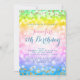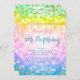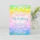 Colourful & Magical Unicorn Rainbow Baby + Kids Birthday Party invitation template with faux glitter confetti (not a real glitter).