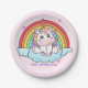 This cute and magical kids Birthday party paper plate design features a unicorn with a rainbow, clouds and hearts can be personalised with your girl/boy's name. The perfect pink purple addition to your child's birthday party.