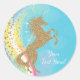 Unicorn stickers with pretty gold unicorn on a pretty teal blue rainbow swirl background. You can easily customise these pretty unicorn stickers for your event by simply adding the text of your choice. You can also change the background colour. This is a printed design with no real glitter.