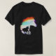 I give wanted to give this a 4 instead of a 5 because these Basic DARK T0shirts run unexpectedly SLIM or Narrow. Which is great if you do not have a potbelly, but I have a paunch. It isn't the shirt's fault that I've got a beer belly. The design and shirt itself is a quality cotton shirt. The color is more of a deep purple, but still a very pretty color. The Basic DARK T-shirts run a bit SLIMMER than the Basic Ts. The neck is a fraction narrower (or seems to be narrower) also. I'm a paunchy middle-aged woman and my neck is 12 inches (31cm) thick and the neckline fell about the same as in the photo of the man, and I had the desire to tug it a bit. So if you're a thick necked man or like loose shirts, be aware these are slimmer shirts. Once I get rid of my lockdown paunch it'll look great. The shirt washed well in cold water with no apparent bleeding. We don't have a dryer, so it hung dry. Did not shrink. Love the colors and the design. The design looks smaller on my shirt than it does on the model on-line. But still, it looks good on the shirt. The printing looks as it does on the model, just the size seems fractionally smaller. Washed garment in cold water, hung dry and design appeared unaffected.