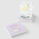 Stone coaster with an adorable white unicorn with pastel green, purple, yellow and pink curly mane and tail. This magical creature is laying down sleeping peacefully with a rainbow coloured shooting star flying over her head. Text says "Magical" in a pink trendy font. Pastel purple and white polka dot background.