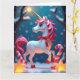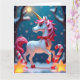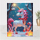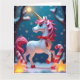Magical Unicorn with Ribbon in Snowy Christmas Card