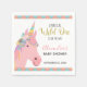 This cute baby shower napkin features trendy pastels and a magical pink unicorn. The unicorn has a rainbow mane decorated with boho flowers and feathers and a subtly glittery gold rainbow horn. The text says "A Magical Wild One is On the Way" with "Wild One" in subtly glittery gold in a popular script font. The customisable mother's name appears below in popular pink script typography with a hand lettered look. A customisable date appears at the bottom. A matching tribal border appears at the top and bottom. These napkins go perfectly with the matching invitations, party supplies and gifts in the same collection, and they also work well on their own.