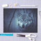 Tissue paper with an image of a magical mystical wolf standing in a forest with gentle snow falling around.