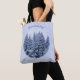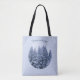 This Tote Bag features a snowy winter forest. Snowy fir trees in blue tones on a delicate background. Original Photograph. Romantic Christmas gift. Custom text.