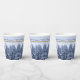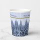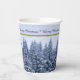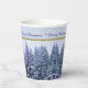 This Paper Cups features a snowy winter forest. Snowy fir trees in blue tones on a delicate background with the text "Merry Christmas". Original Photograph. Festive, custom paper cups for your Christmas Party!
