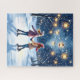 Celebrate the beauty of winter with this enchanting puzzle featuring two friends holding hands while ice skating beneath glowing lanterns and softly falling snow. The peaceful snowy landscape and cosy lantern light create a heartwarming holiday scene perfect for puzzle lovers. The number of pieces and puzzle size can be customised to any other rectangular size offered, making it ideal for all skill levels.