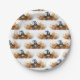 A Magical Witches and wizards Patterned Halloween Party Paper Plate featuring a watercolor pumpkin witch surrounded by swirling autumn leaves on a white background A great party accessory for a spellbinding, potion brewing, magical and spooky Halloween party.
